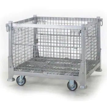 鍛造吊金具をパレットに一体取り付けしているため、資材の積み降ろしを安全に行えます。折り畳んで積み重ねる事で、スペースも節約できます。表面処理は環境に優しい(クロムフリー)溶融亜鉛メッキを採用しています。